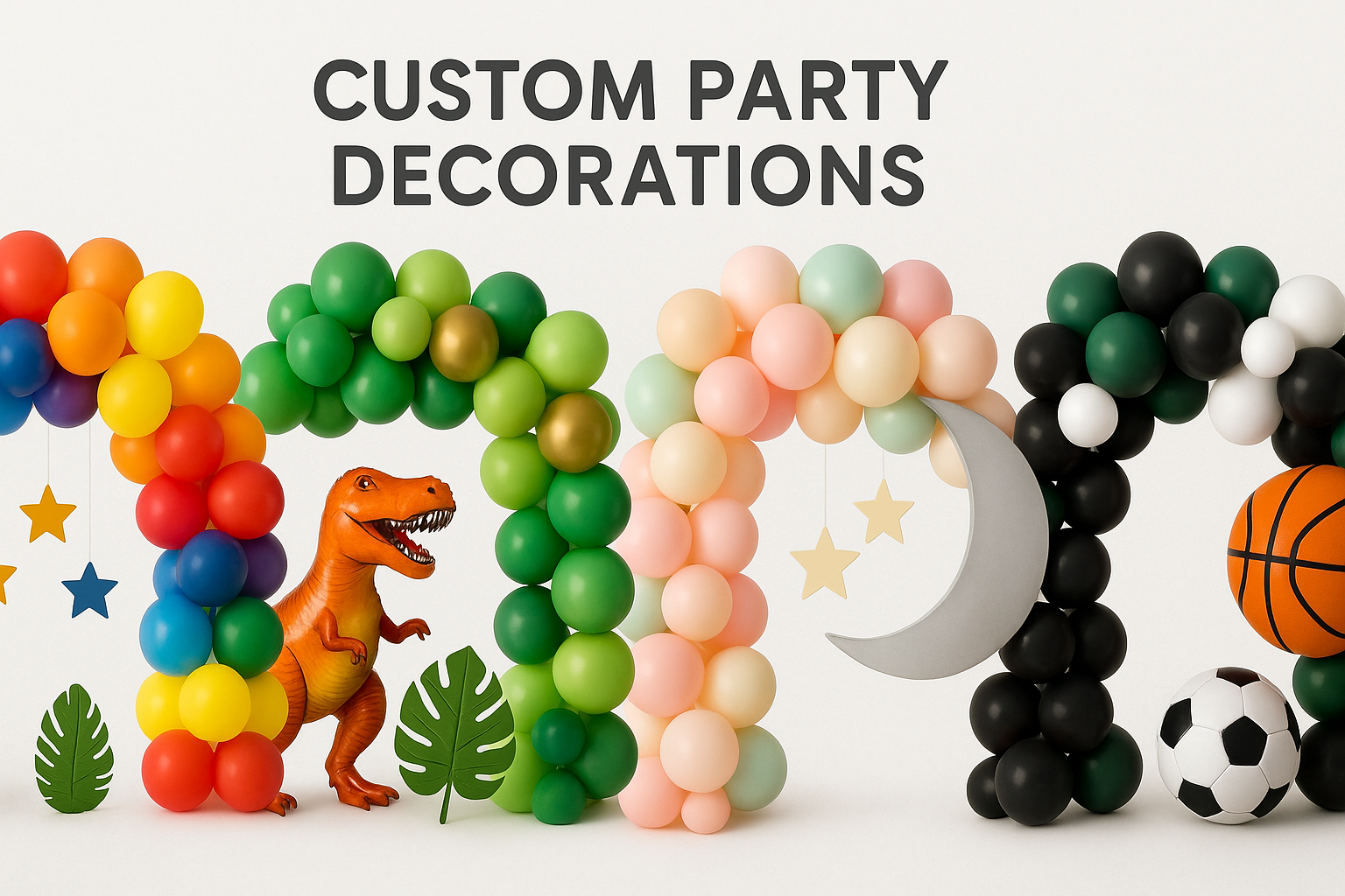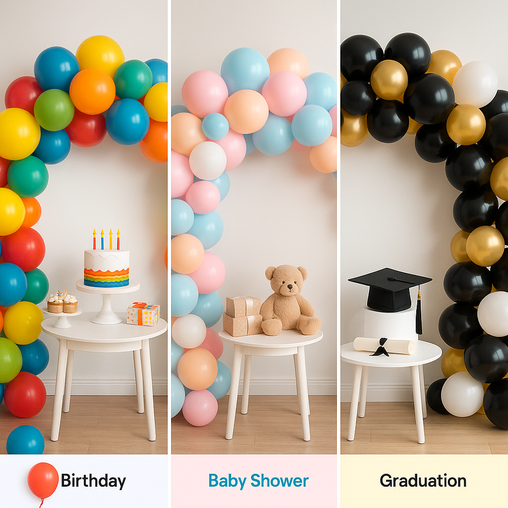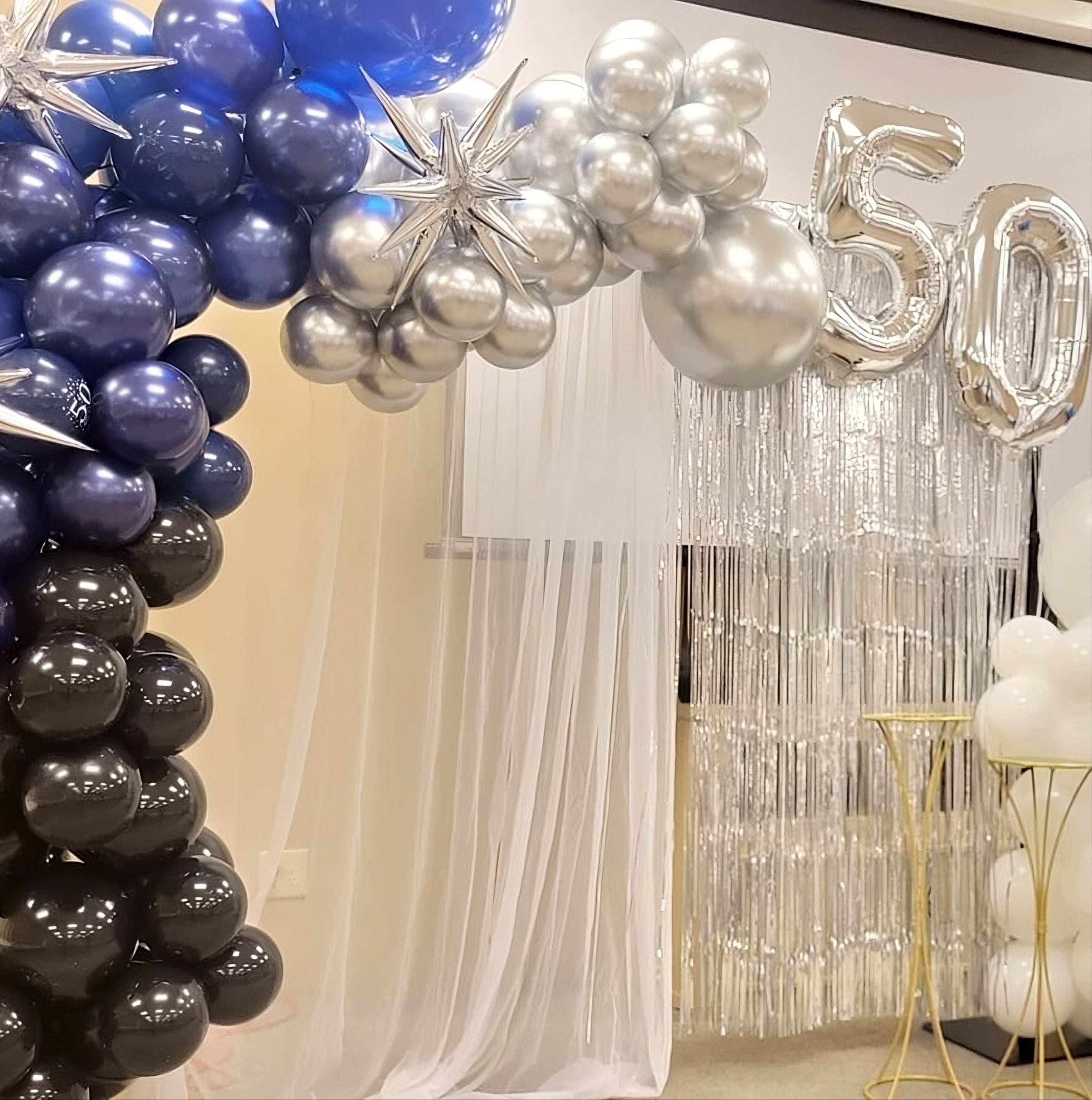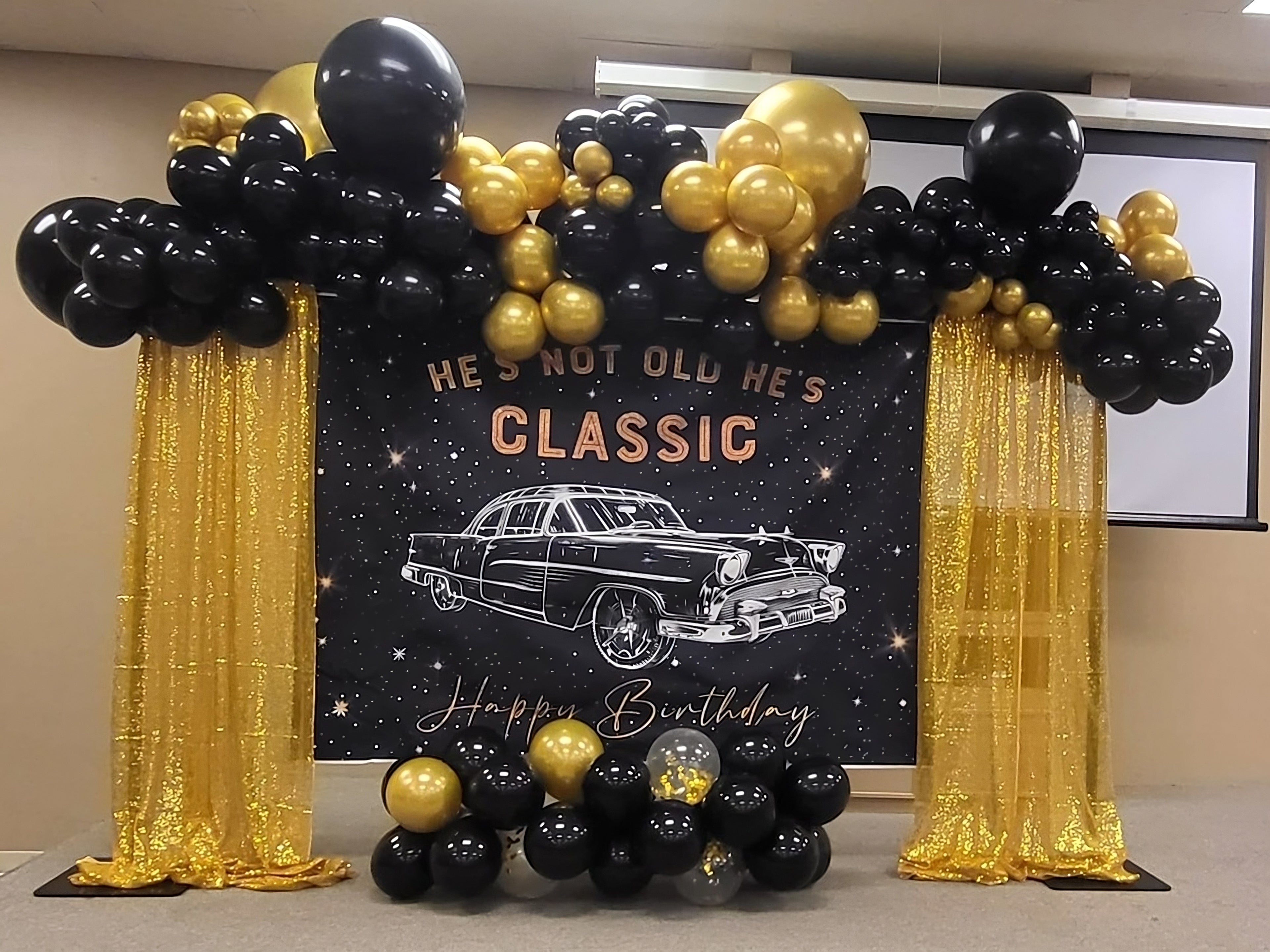 • 🎉 Themed Backdrops (fabric, printed, or shimmer)