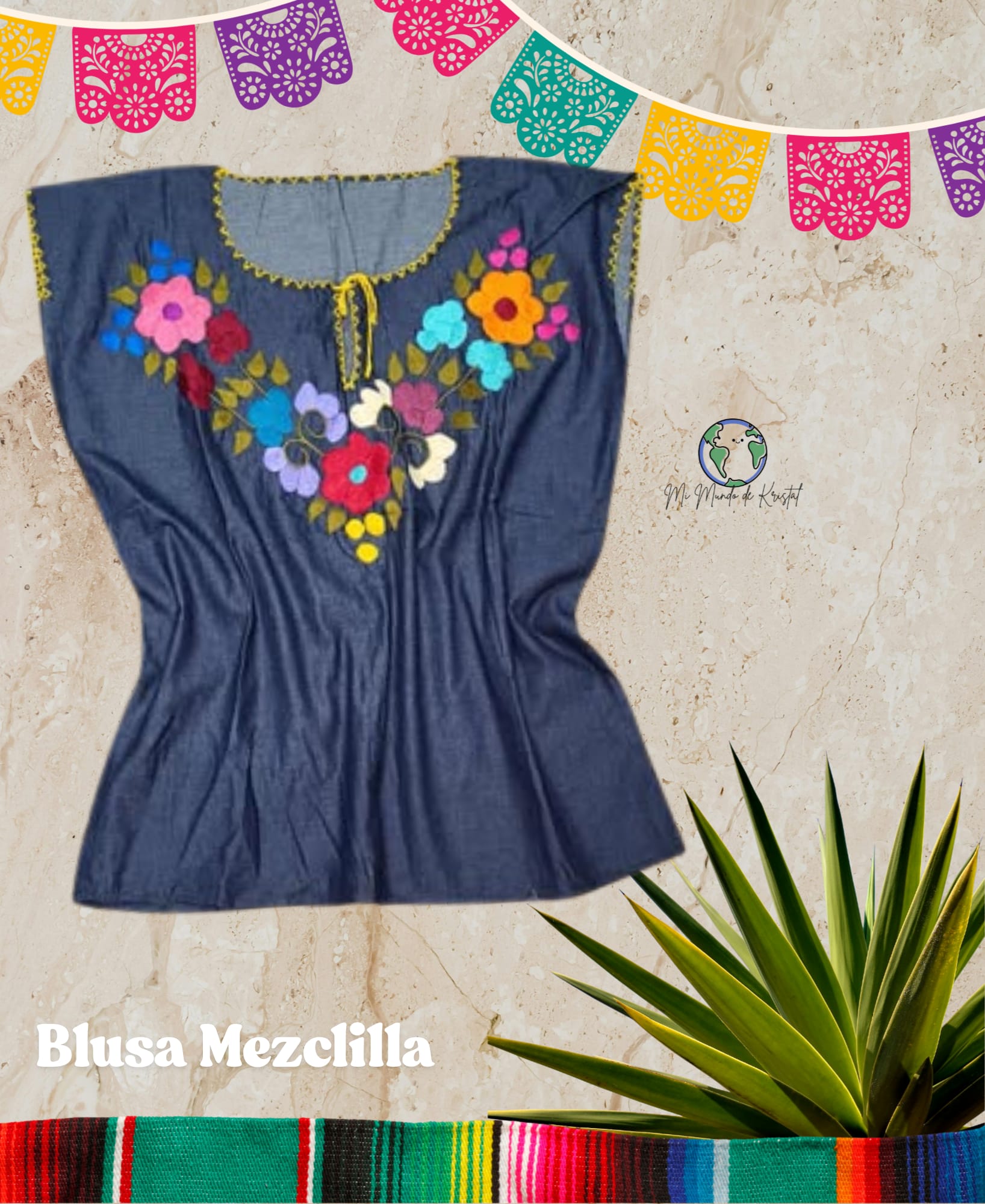 Our Blusa Mezclilla brings together the classic look of denim with the beauty of hand-embroidered floral patterns. Each piece is carefully crafted by skilled artisans, giving you a blouse that’s both durable and full of cultural expression.